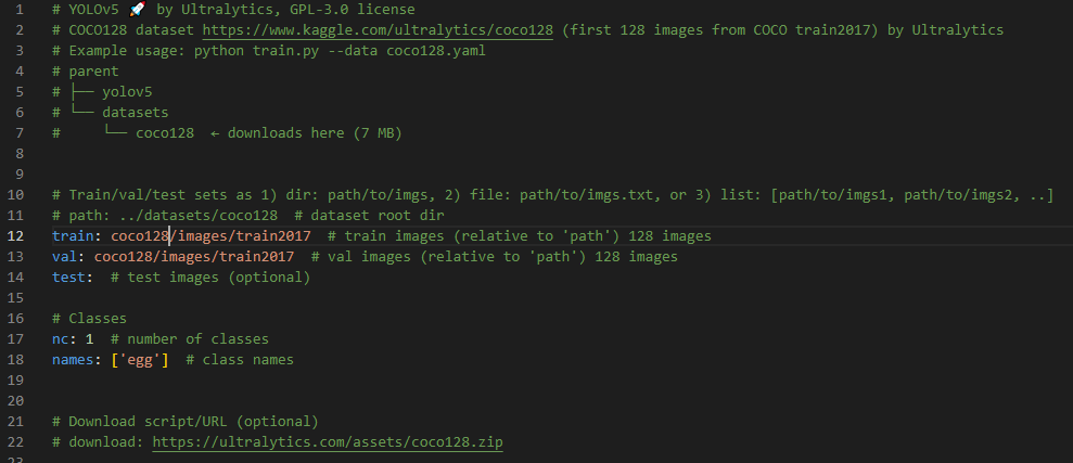 6. data 폴더 내 coco128.yaml파일 수정
