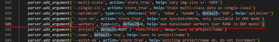 7. yolov5 폴더 내 train.py 파일 들어가서 num_worker default=0 으로 수정