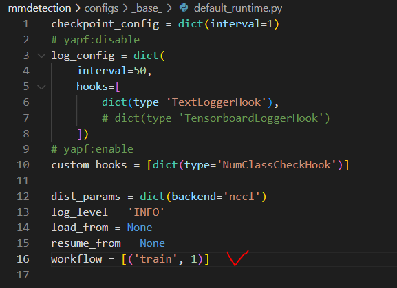 : 해당 에러는 아래 사진에서 workflow = [('train', 1), ('val', 1)]
