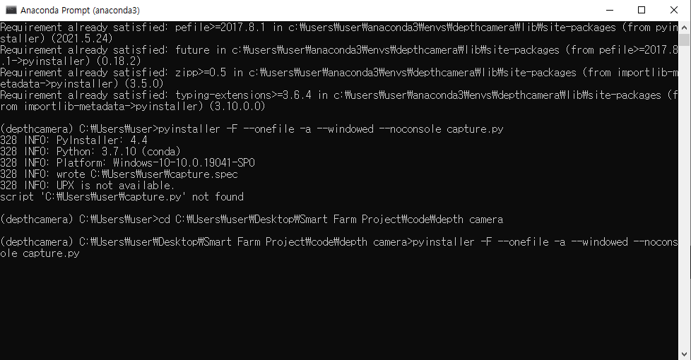 2. 실행파일(exe)로 만들고자 하는 .py 파일이 있는 디렉토리로 이동
