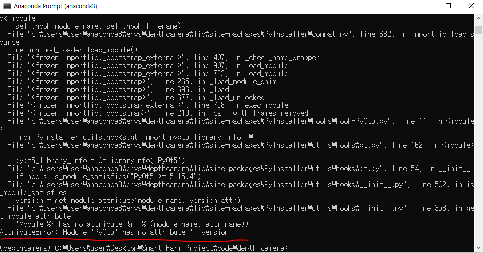 AttributeError: Module 'PyQt5' has no attribute '__version__' 에러 발생하였다.