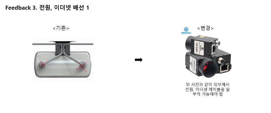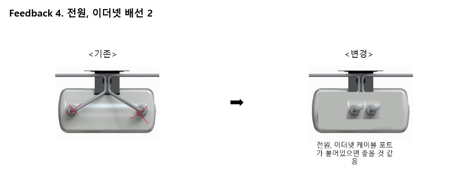 - 케이블 배선2: 전원 및 이더넷 케이블은 양쪽 사이드에 각각 위치한 방식이 아닌 한곳에 붙어있어야 함
