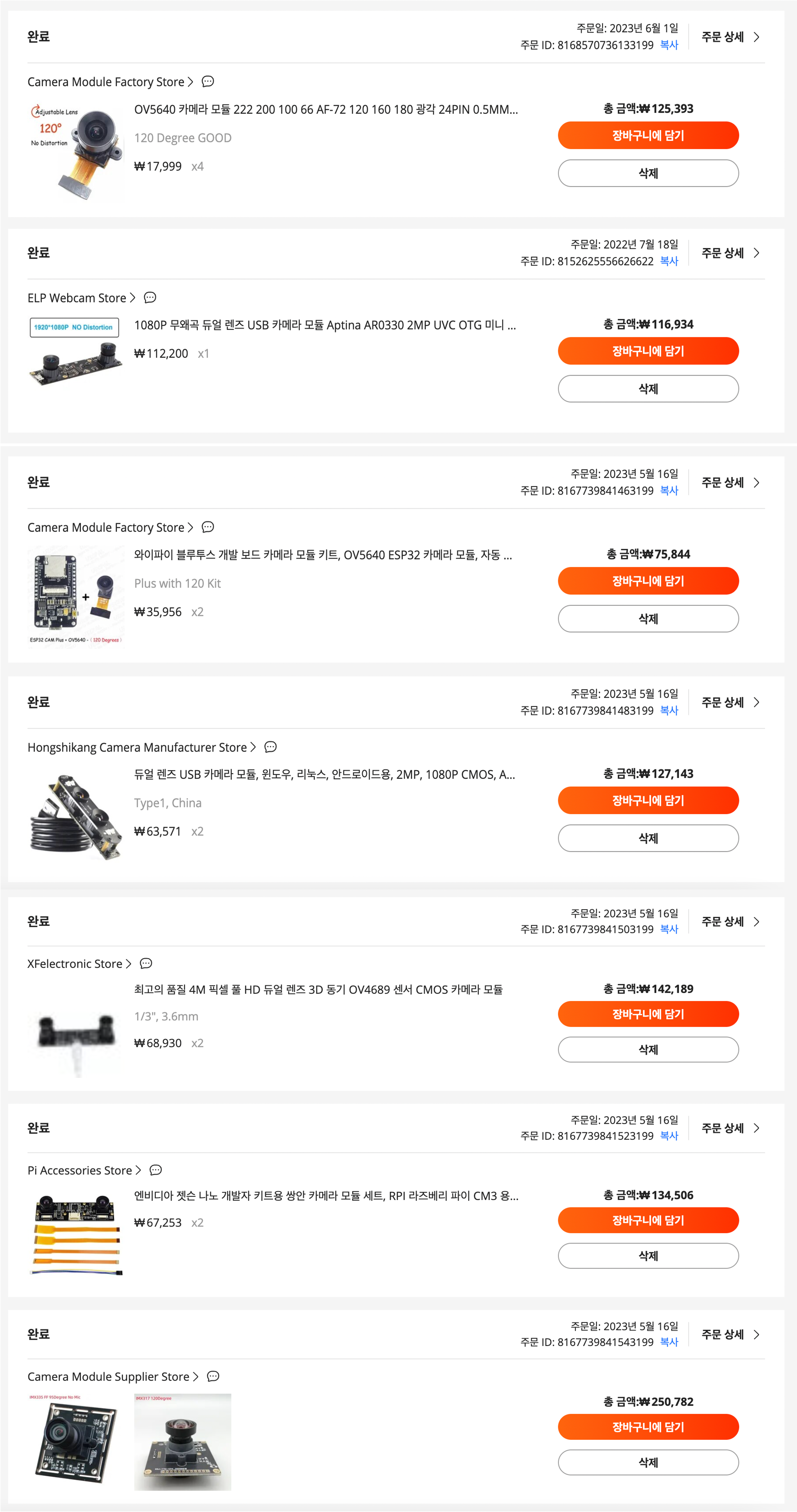 제가 카메라 모듈을 선정할 때 고려한 사항은 다음과 같습니다.