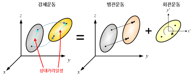 - 두번째 문제는, 객체가 강체운동을(평행이동 or 회전) 하더라도 같은 결과를 출력해야 한다는 점입니다. 강체운동이란 아래 그림과 같이 병진운동(평행이동)과 회전운동으로 발생되는 변환을 뜻합니다.