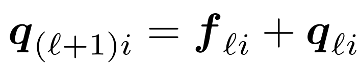 이렇게 얻어진 최종 feature fli를 다시 쿼리에 포함시키는 작업을 진행해야 합니다. 이때 아래 수식이 사용됩니다.